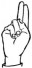 На ћирилици написано ЈАБУКА ПОЉАКОВИЋ састоји се из 15 слова [?]. Исписано ћириличном једноручном азбуком за глувонеме: